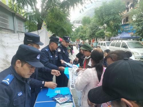“老乡,刹刹脚,今天咱们就依法营商展开宣传,……”大喇叭中传来移民管理警察亲切的傈僳语,过往群众迅速被吸引,宣展台上《中华人民共和国中小企业促进法》、《中华人民共和国劳动法》、《优化营商环境条例》等法律法规被队员们精心整理成手册和宣传单,以面对面的形方式,采用多种形式和语种,向“老板”和“顾客”传递法律的精髓与智慧。